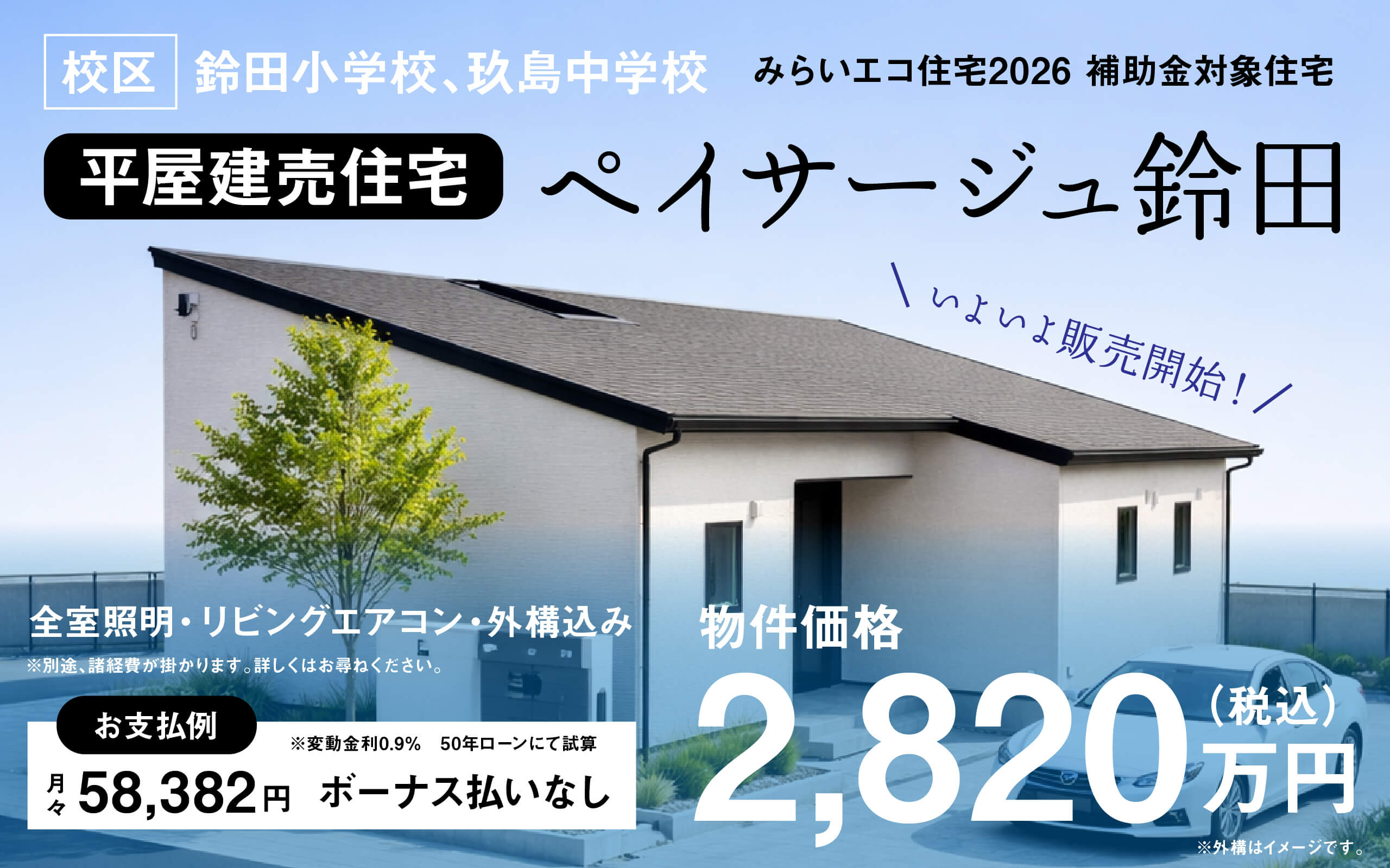 エアコン(リビング)・全室照明付き・外構工事込み